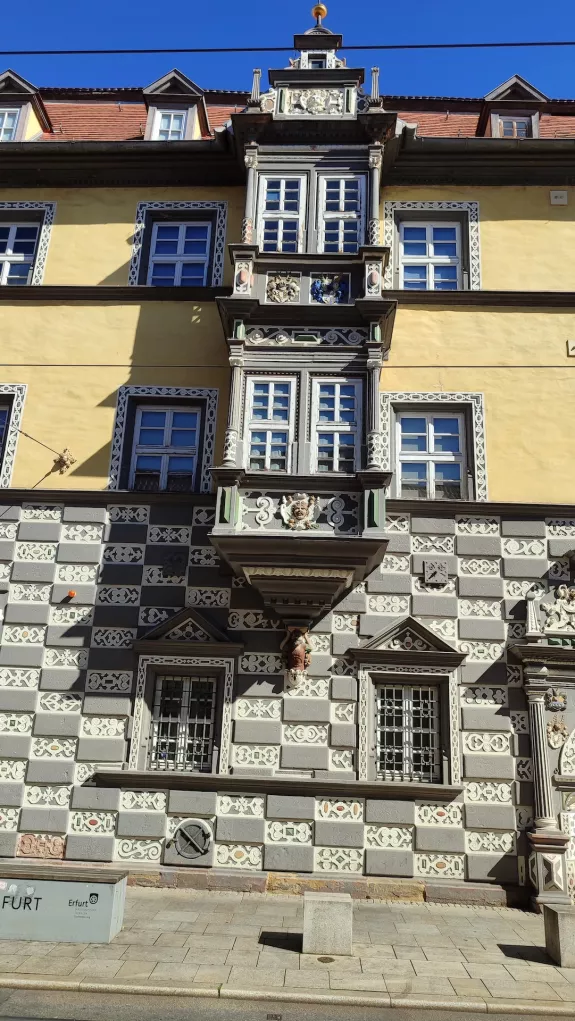 Dieser Spätrenaissance-Bau ist der letzte unter den großen Waidjunkerhöfen, die in Erfurt errichtet wurden. Die großen Höfe dieser Händler zählen zu den eindrucksvollsten Bürgerhäusern des gotischen Spätmittelalters und der Renaissance. Solide steinerne Erdgeschosse mit prunkvollen Tordurchfahrten zu den Höfen und Wirtschaftsgebäuden trugen reich verzierte Obergeschosse aus Fachwerk, oft etwas überhängend.